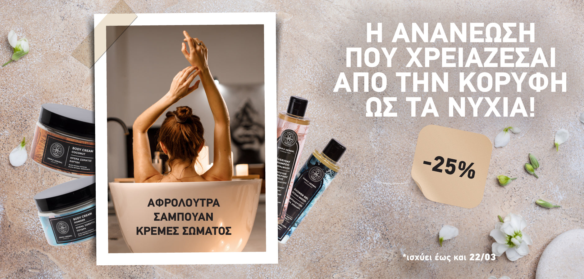 Έχοντας τη φύση ως έμπνευσή μας δημιουργούμε Φυτικά Καλλυντικά από φυσικά συστατικά σε ποσοστό 90% έως 100%, χωρίς την χρήση Χημικών και Parabens.